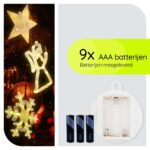 Kerstverlichting set voor het raam met engel, sneeuwvlokken en sterren