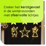 Breng de magie van de feestdagen naar je huis met deze betoverende set kerstverlichting. Deze unieke set van drie figuren – een engel, een ster en een kerstman – zorgt voor een warme en feestelijke sfeer in elke kamer. Perfect voor wie op zoek is naar prachtige kerstdecoratie voor binnen.