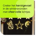 - Eenvoudige bevestiging: Dankzij de handige zuignappen bevestig je de kerstverlichting moeiteloos aan elk raam.