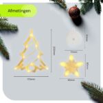 Breng de magie van Kerstmis naar je huis met de kerstverlichting raam kerstboom! Deze sfeervolle kerstdecoratie voor binnen is niet alleen een lust voor het oog, maar ook eenvoudig te installeren. Met zijn warme witte licht van 2700K zorgt deze kerstverlichting op batterij voor een gezellige en feestelijke sfeer, zonder gedoe met stopcontacten. Ideaal voor ramen, dankzij de handige zuignap, en met een snoer dat een prachtige kerstboom en twee verlichte sterren omvat.