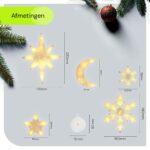Kerstverlichting set voor het raam met maan, noorderster en sneeuwvlokken