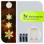Met de meegeleverde zuignap kun je de kerstverlichting snel en gemakkelijk aan elk raam bevestigen. Geen gereedschap nodig! Plaats de zuignap op het raam, hang de sneeuwvlokken op, en geniet direct van de sfeervolle verlichting.