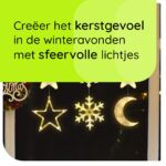 - Eenvoudige bevestiging: Dankzij de handige zuignappen bevestig je de kerstverlichting moeiteloos aan elk raam.