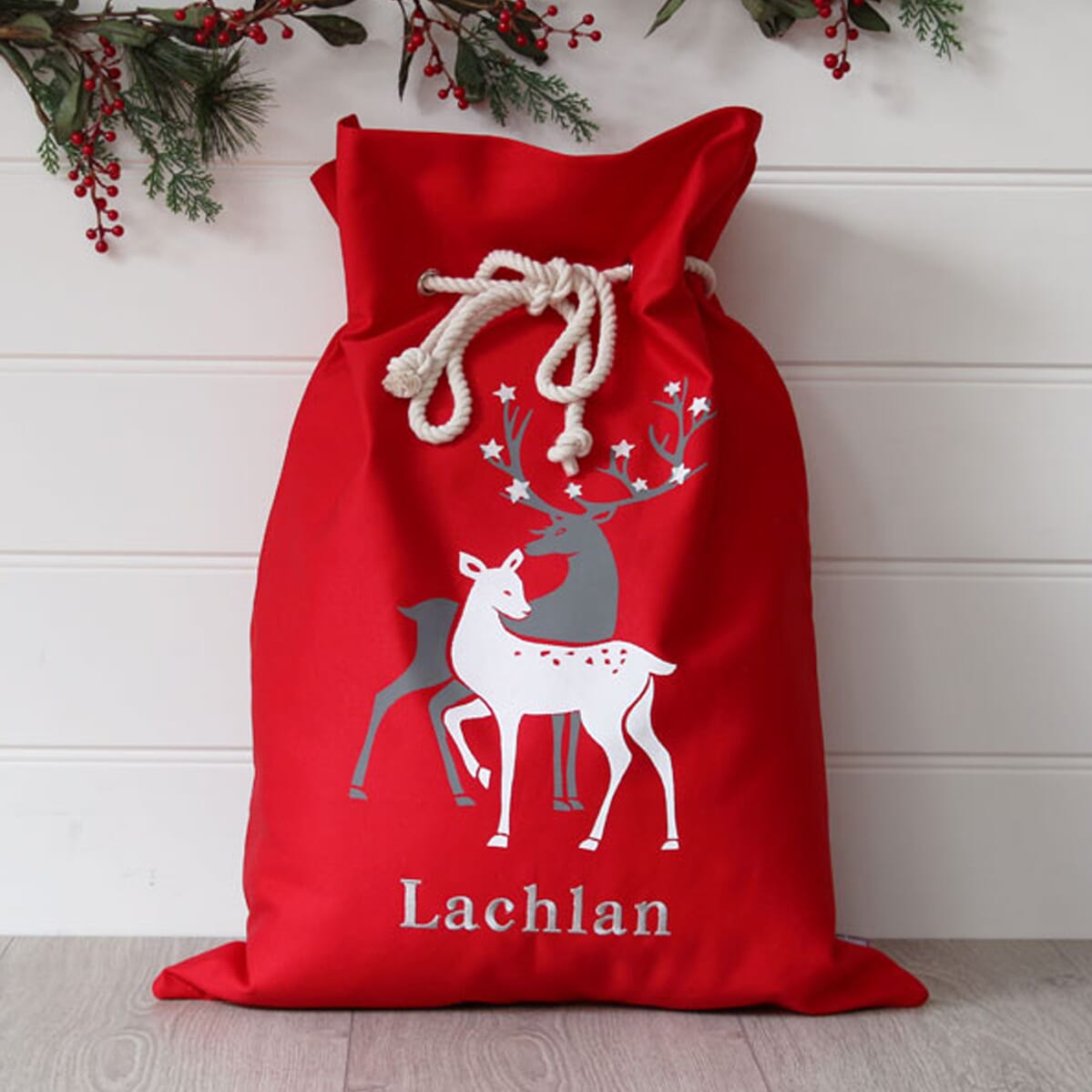 Deze rode kerstzak in kerstman-stijl is een praktische en feestelijke oplossing voor het verpakken van grote cadeaus tijdens de feestdagen.