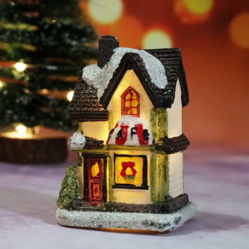 Het verlichte kerstdorphuisje is een sfeervolle miniatuurdecoratie, ideaal voor het creëren van een gezellige kerstsfeer in huis. Dit huisje, gemaakt van polyresin, is voorzien van warm licht en is perfect geschikt voor plaatsing op een tafel of vensterbank. Het compacte formaat van 4×6.5×9cm maakt het een veelzijdige toevoeging aan elk kerstdorp.