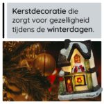 Het kerstdorphuisje is uitgerust met warm licht, wat zorgt voor een uitnodigende en gezellige uitstraling. Dit maakt het huisje een uitstekende keuze voor het toevoegen van een warme gloed aan uw kerstdecoraties.