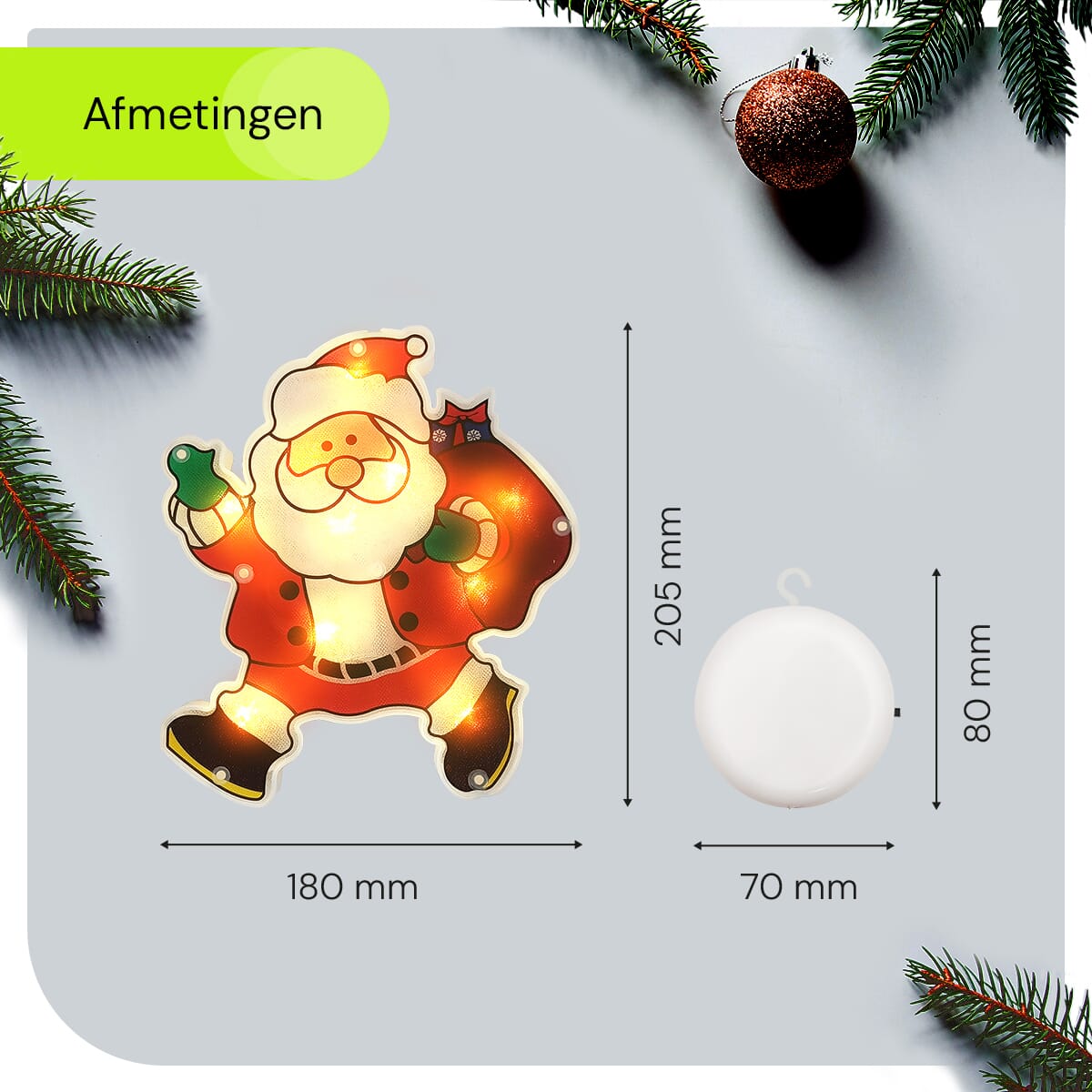 - Hoe groot is de Kerstverlichting Raam Kerstman? De afmetingen zijn 16.5x19cm, perfect voor elke raamdecoratie.