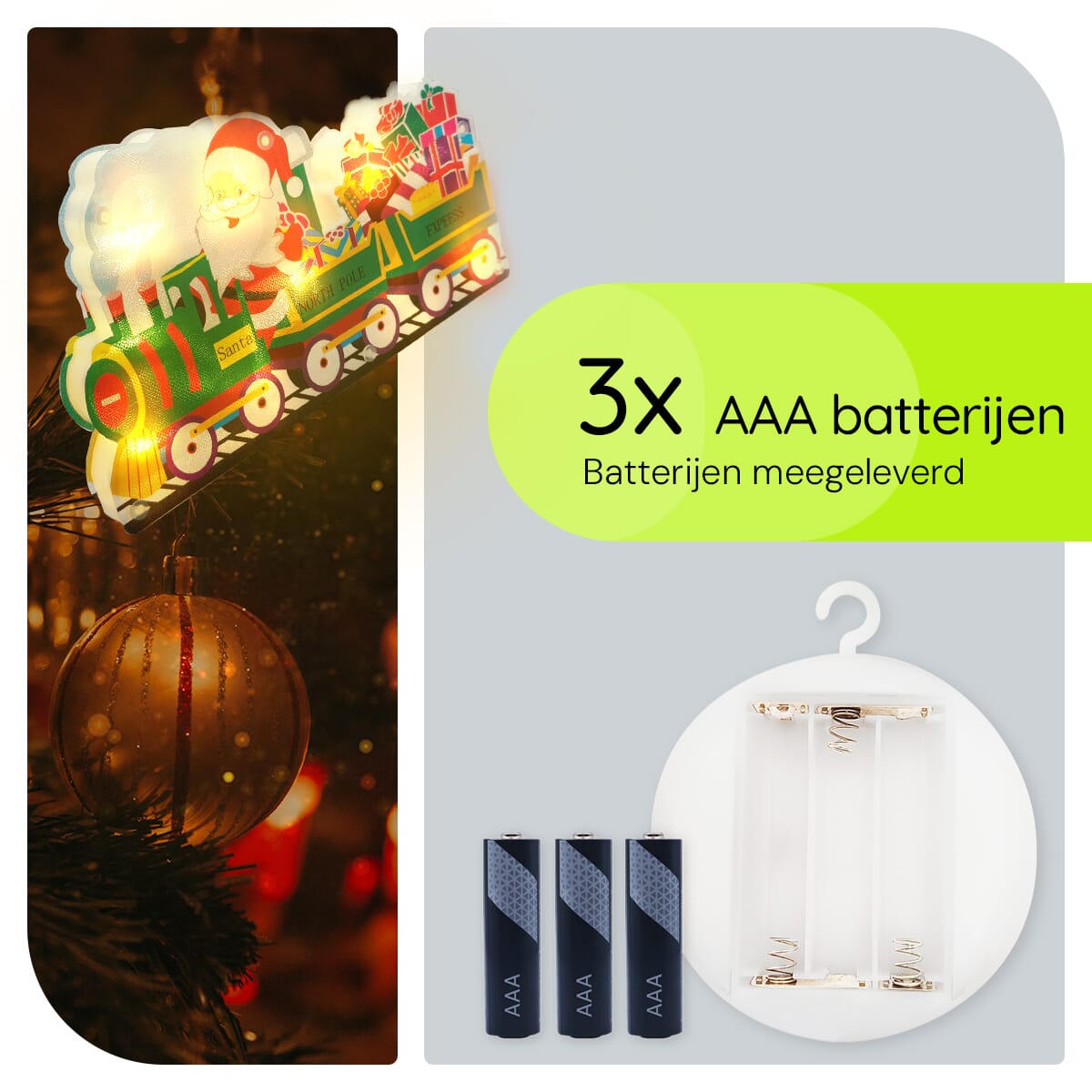 De kerstverlichting raam trein werkt eenvoudig. Bevestig de zuignap aan het raam, schakel de verlichting in via de batterijen en geniet van de sfeervolle gloed die je raam oplicht.