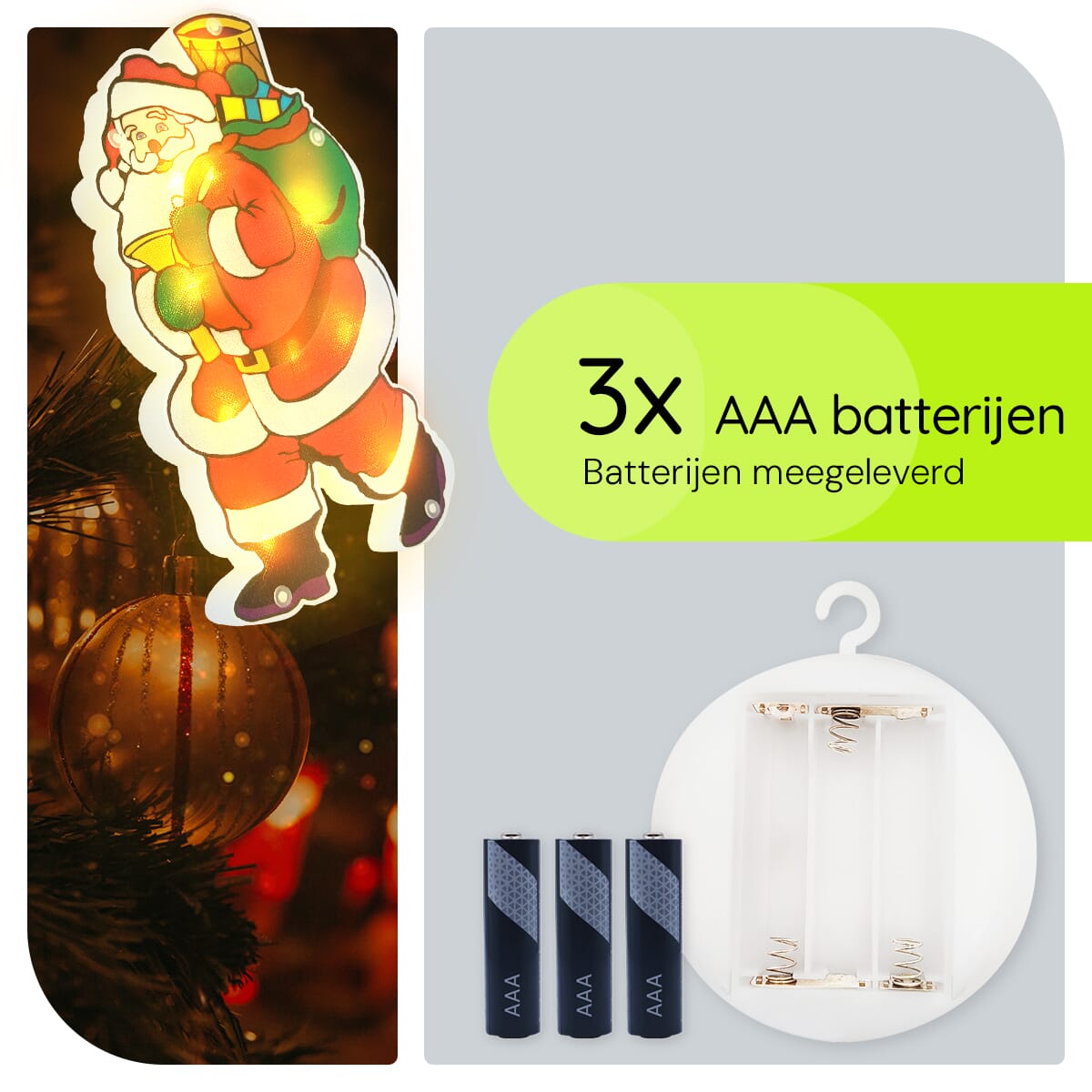 De kerstverlichting werkt eenvoudig: plaats de zuignap op een schoon raamoppervlak, bevestig het koordje, en schakel de verlichting in. De batterijen zorgen voor een langdurige en heldere gloed, waardoor je raam een echte eyecatcher wordt tijdens de feestdagen.