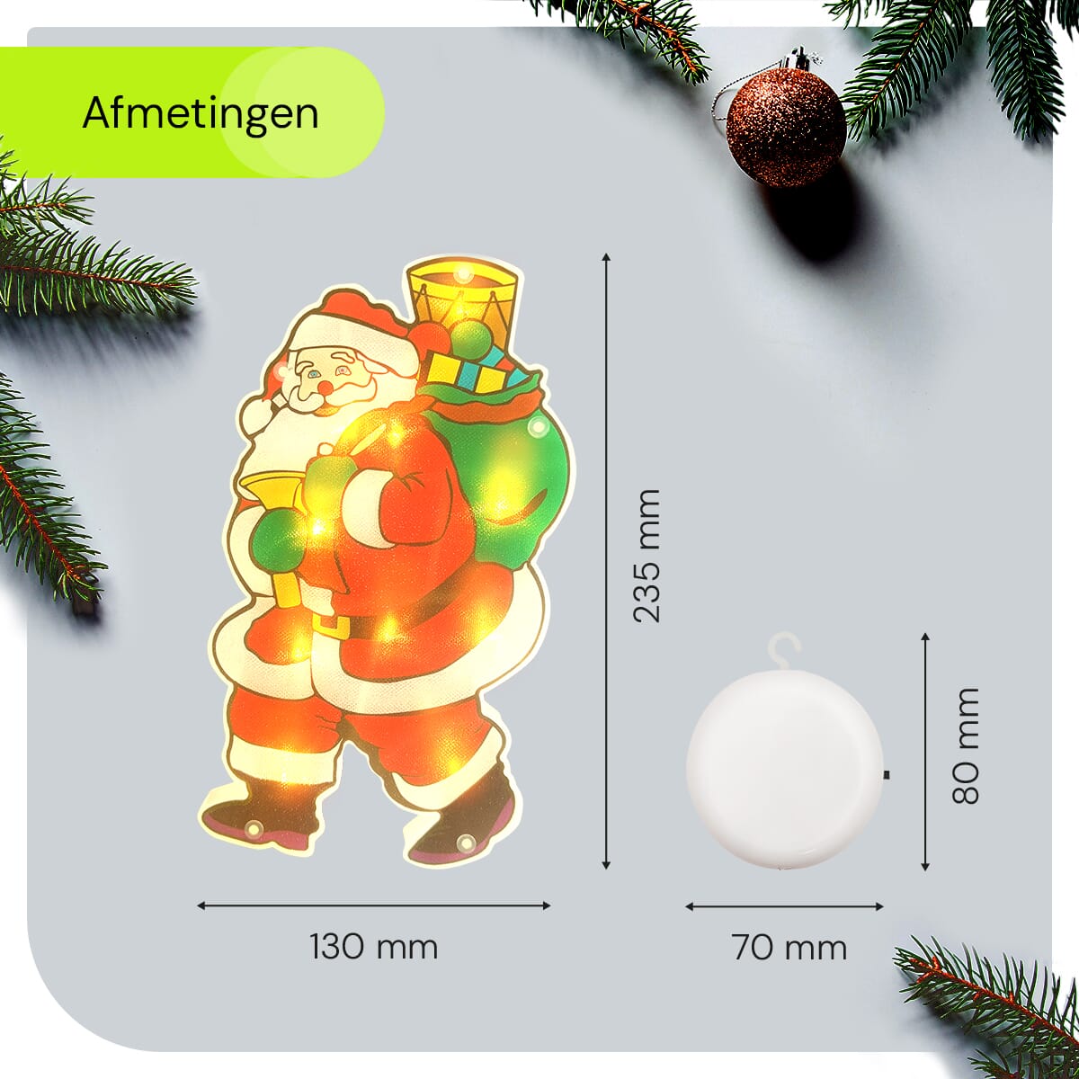 - Hoe groot is de kerstverlichting? De afmetingen zijn 23.5×13 cm.