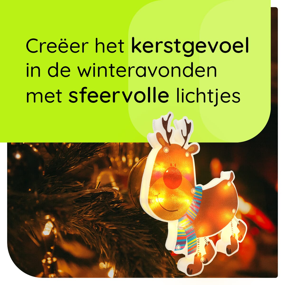 Met deze verlichte raamdecoratie creëer je een warme en gezellige kerstsfeer in je huis. Het schattige rendierontwerp zorgt voor een feestelijke uitstraling die zowel jong als oud zal betoveren. Of je nu in de woonkamer, keuken of slaapkamer bent, deze raamverlichting brengt de kerstsfeer direct naar binnen.