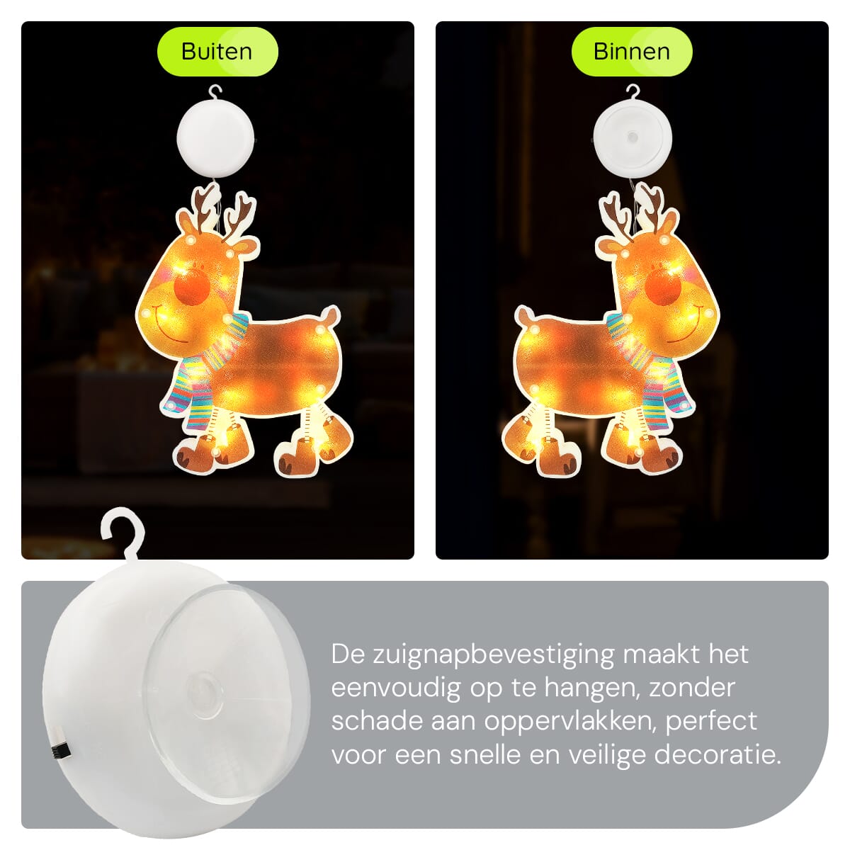 Breng de magie van kerst naar je huis met deze vrolijke rendier raamverlichting. Perfect voor elke kerstliefhebber die zijn huis wil omtoveren tot een winterwonderland. Deze raamdecoratie is eenvoudig te bevestigen en maakt je feestdagen extra speciaal.