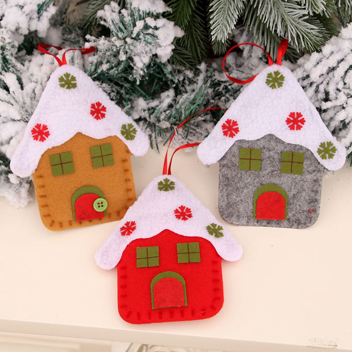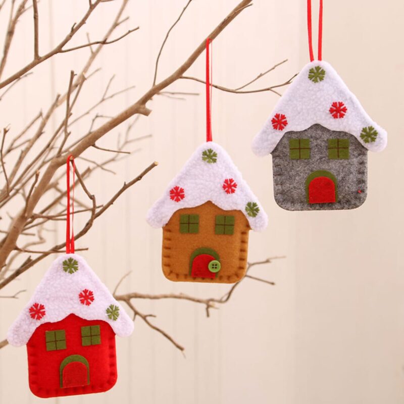 De vilten kersthangers zijn eenvoudig op te hangen met behulp van een koord dat aan elk huisje is bevestigd. Je kunt ze gemakkelijk aan takken van de kerstboom of aan een haak voor het raam hangen.