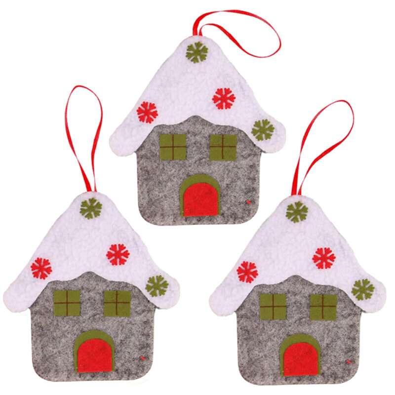 Vilten Kersthanger Set – 3 Huisjes – 13×11cm