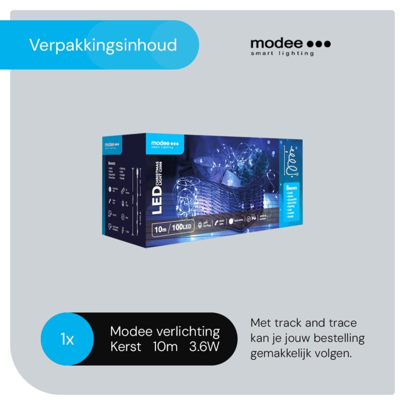De Modee Lichtsnoer is eenvoudig te installeren en te gebruiken. Sluit de lichtslinger aan op een standaard stopcontact en kies uit de 8 verschillende lichtstanden om de perfecte sfeer te creëren. De lichtslinger is niet dimbaar, maar de verschillende lichtstanden bieden voldoende variatie om aan je wensen te voldoen. Dankzij de 10.000K kleurtemperatuur straalt het licht een helder koud wit uit, wat zorgt voor een frisse en feestelijke uitstraling.