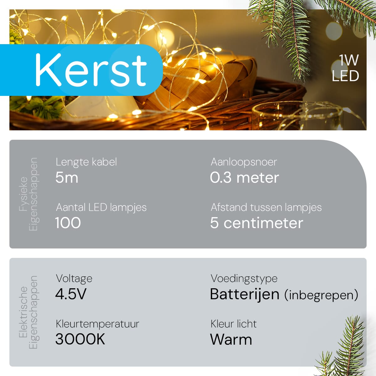 De 100 LED lampjes van de Modee Lichtsnoer Kerst 5 Meter stralen een warm wit licht uit met een kleurtemperatuur van 3000K. Dit zorgt voor een gezellige en uitnodigende sfeer, perfect voor de feestdagen. Het warme licht is niet te fel, waardoor het een subtiele maar effectieve toevoeging is aan je kerstdecoratie.