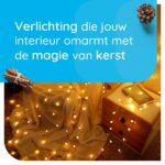 Met een kleurtemperatuur van 2550K stralen de LED lampjes een warm wit licht uit dat een gezellige en uitnodigende sfeer creëert. Perfect voor de donkere winteravonden, deze lichtslinger zorgt ervoor dat je huis er altijd feestelijk uitziet.