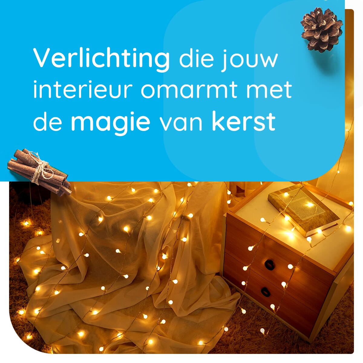 - Warm wit licht: De 2550K warm witte LED lampjes creëren een gezellige en uitnodigende sfeer.