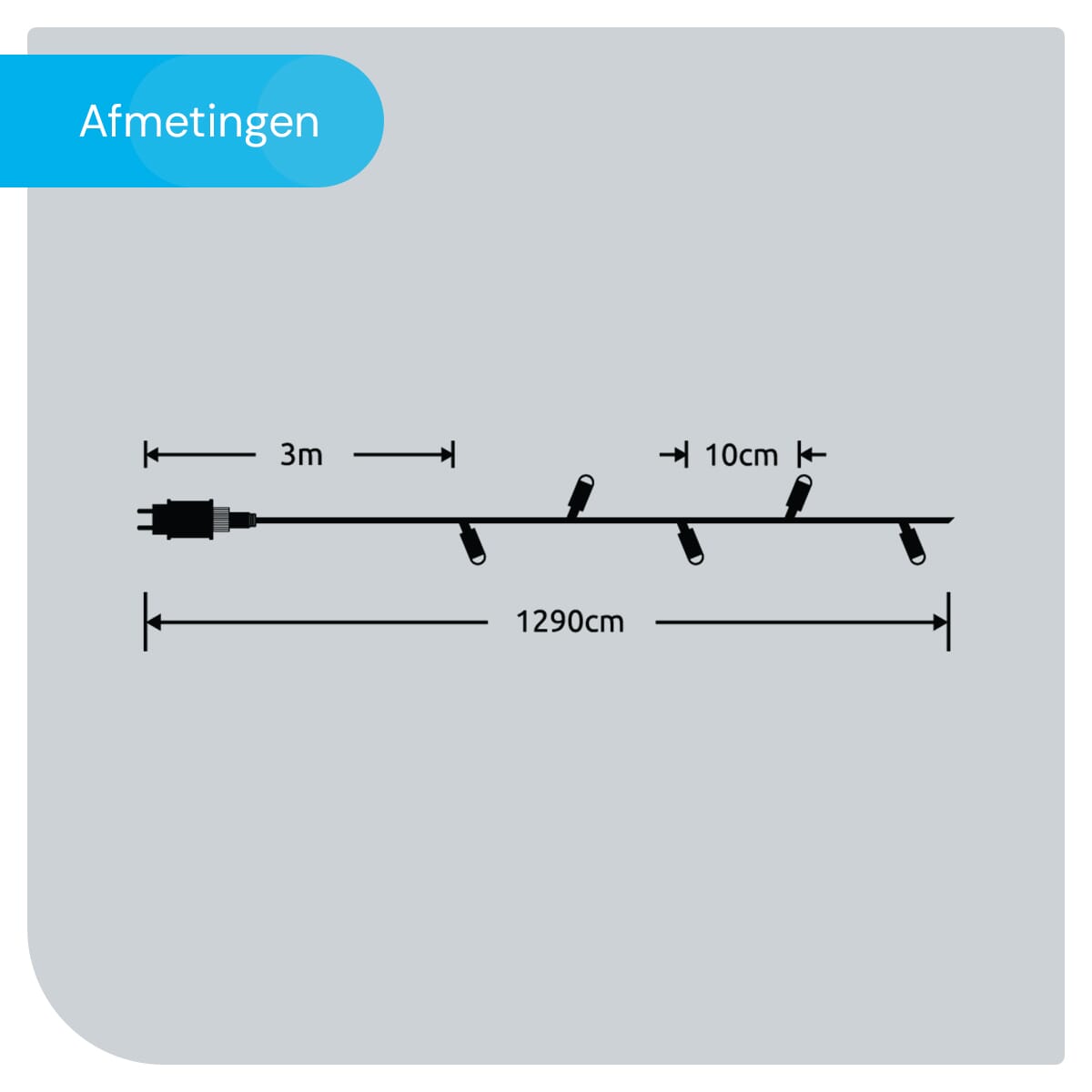 - Hoe lang is het aansluitsnoer? Het aansluitsnoer is 1,5 meter lang, wat voldoende ruimte biedt om de lichtslinger gemakkelijk aan te sluiten.