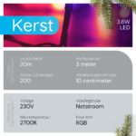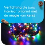 - Feestelijke sfeer: Met 200 LED lampjes in kleurrijke RGB-tinten en 8 lichtstanden, creëer je een magische kerstsfeer.