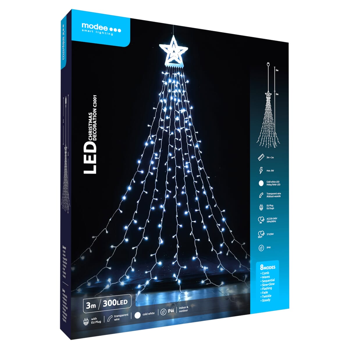 Breng de magie van de feestdagen tot leven met de Modee Lichtsnoer Kerstboom met Ster. Deze prachtige kerstverlichting is perfect voor zowel binnen als buiten en zorgt voor een betoverende sfeer. Met 300 LED lampjes en 8 verschillende lichtstanden creëer je eenvoudig de perfecte ambiance voor elke gelegenheid. Laat je huis stralen met koud wit licht en geniet van een onvergetelijke kerst.