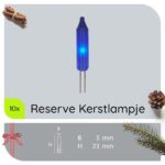 Breng de magie van kerst tot leven met onze blauwe reserve kerstlampjes. Geen gedoe meer met complete sets vervangen; vervang eenvoudig de kapotte lampjes en geniet van een stralende kerstboom. Deze insteeklampjes zijn de perfecte oplossing voor jouw kerstboomverlichting, zonder dat je de fitting hoeft aan te passen.