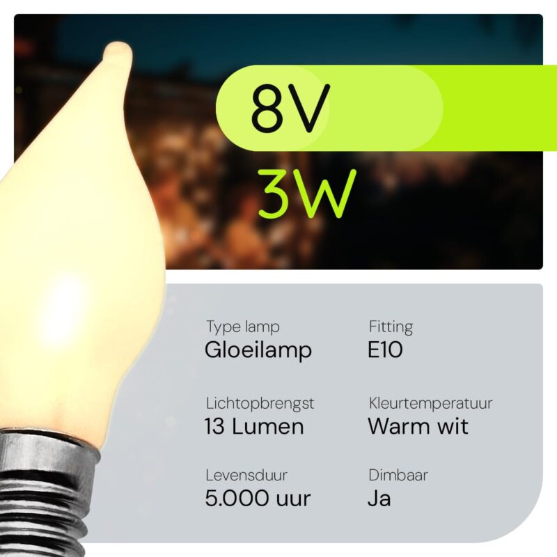 - Wat is de voltage en wattage van dit lampje? Het werkt op 8V en heeft een vermogen van 3W.
