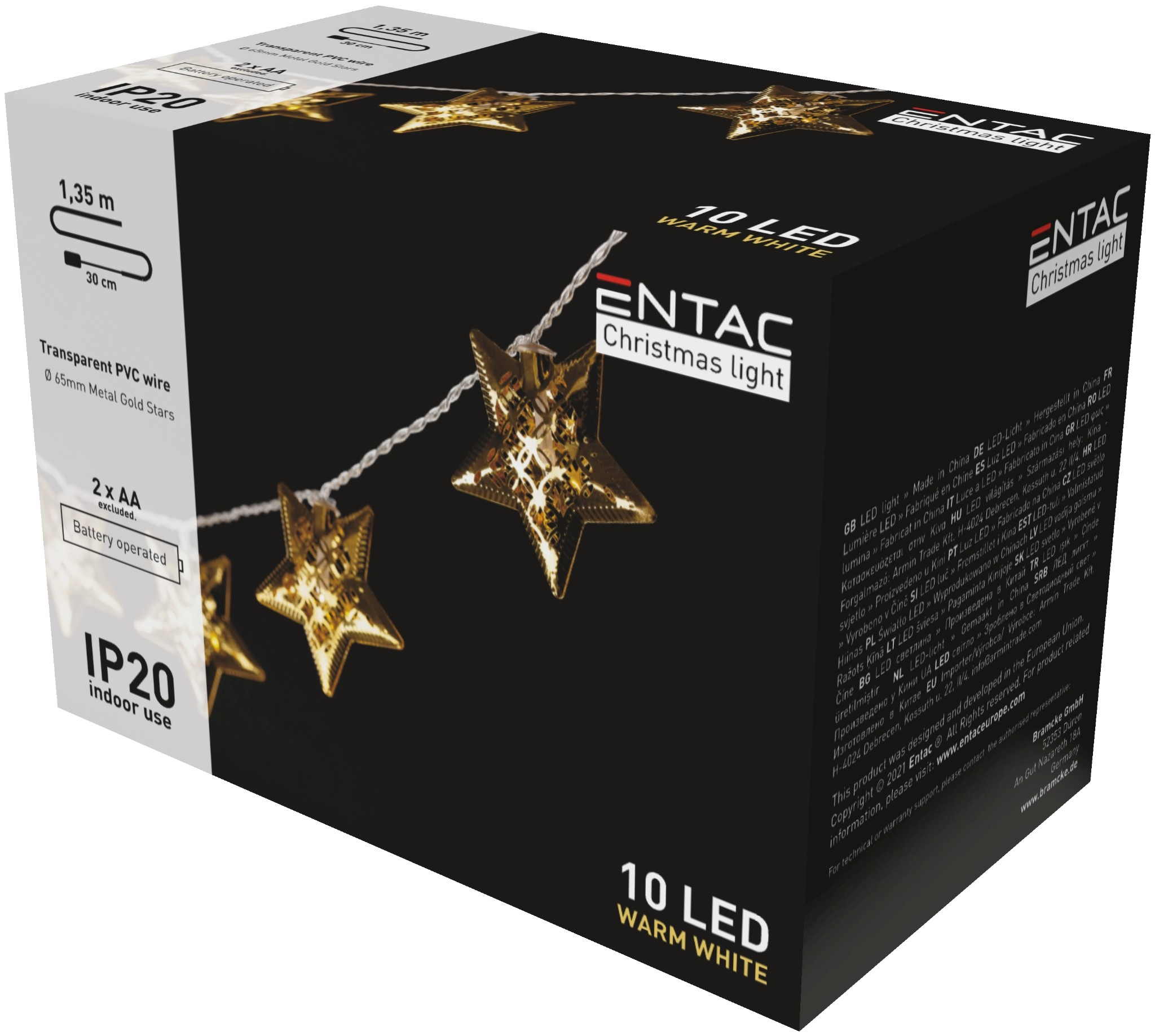 De goudkleurige metalen sterren, elk met een diameter van 65 mm, geven een stijlvolle en feestelijke uitstraling aan je kerstdecoratie. Deze kerstverlichting is niet alleen functioneel, maar ook een prachtige toevoeging aan je kerstversiering. De sterren zijn stevig en duurzaam, waardoor je er jarenlang van kunt genieten.