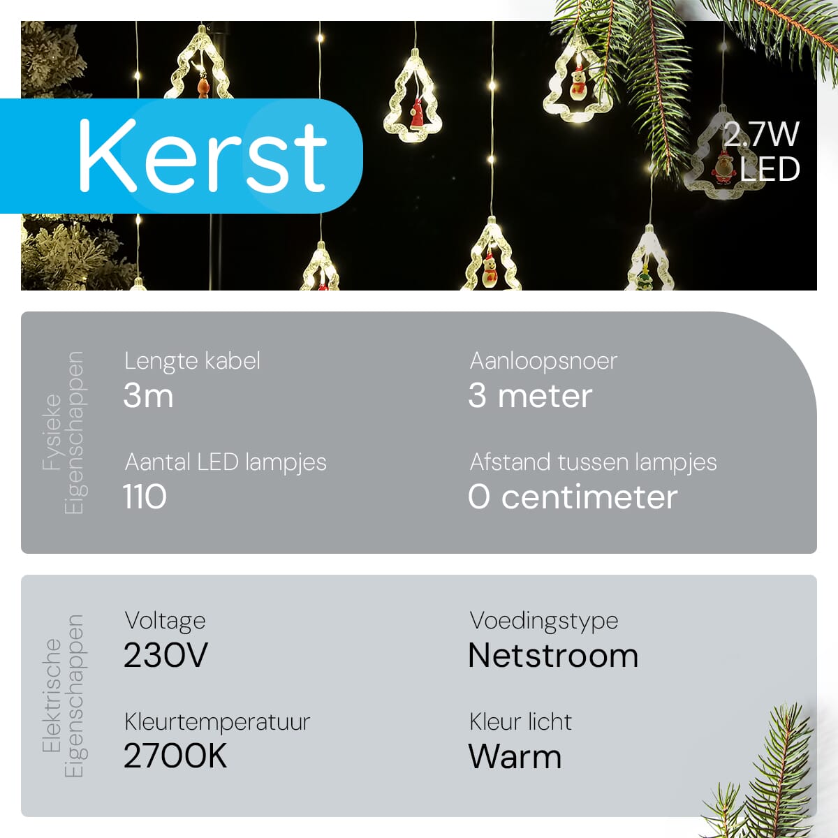 - Warm wit licht: De 2700K LED lampjes stralen een warm wit licht uit dat een gezellige en uitnodigende sfeer creëert.