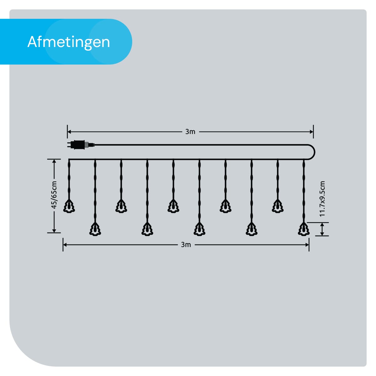 - Hoe lang is de stroomkabel? De stroomkabel is 1,5 meter lang, waardoor je voldoende ruimte hebt om de lichtslinger aan te sluiten op een stopcontact.