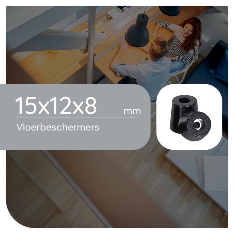 Vloerbeschermers 15x12x8mm – Anti-slip doppen – Rond – Zwart